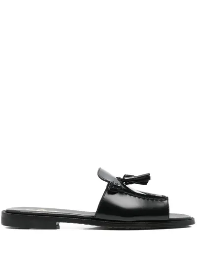 black tassel detail branded insole round open toe