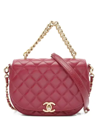 circa 2017-2018 pink calf leather signature interlocking CC turn-lock fastening diamond quilting cable-link chain adjustable shoulder strap rear slit pocket main compartment internal slip pocket gold-tone hardware Condition: EXCELLENT. This previously owned item is in near-perfect condition with no signs of damage or use. Serial number: 24934283