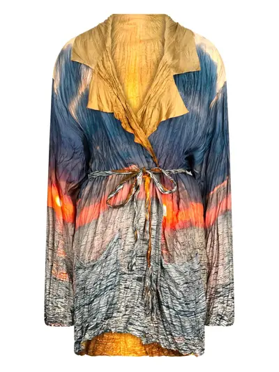 blue detachable adjustable waist strap all-over graphic print long sleeves