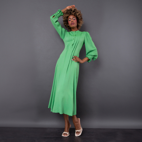 Chloe Ladies Vibrant Green Pintucked Crepe Long Dress, Brand Size 36 (US Size 4) - CHC21ARO2600739T (LPN1416)