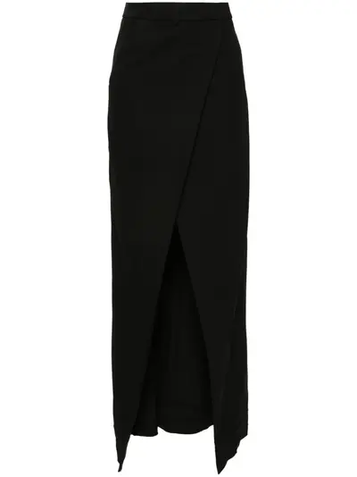 black wool wrap design high waist box-pleat detail belt loops diagonal pocket to the side front slit two rear button-fastening jetted pockets straight hem hook fastening