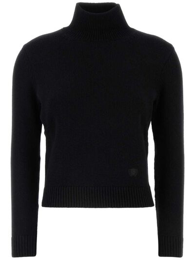 black wool-cashmere blend knitted construction roll neck long sleeves ribbed-knit edge straight hem
