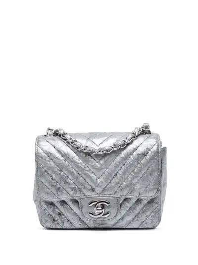CHANEL Pre-Owned 2019 Mini Square Classic Chevron Metallic Crumpled Patent Single Flap crossbody bag - 30038020 (LPN145248)