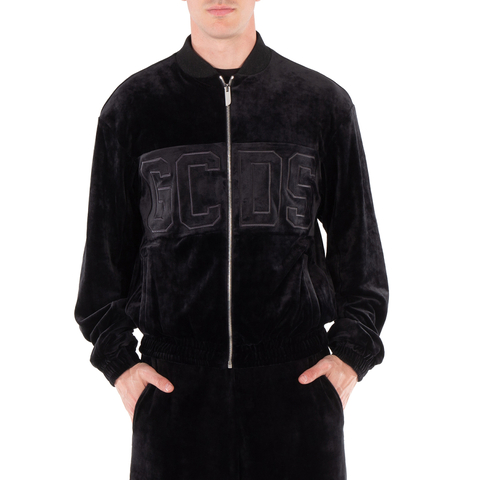 GCDS Logo-Embroidered Velvet Zip-Up Sweatshirt, Size Small - A2CM2005TE1-BLACK (LPN1496)