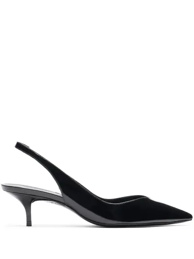 black leather patent finish 50mm kitten heel elasticated slingback strap pointed toe branded leather insole leather sole