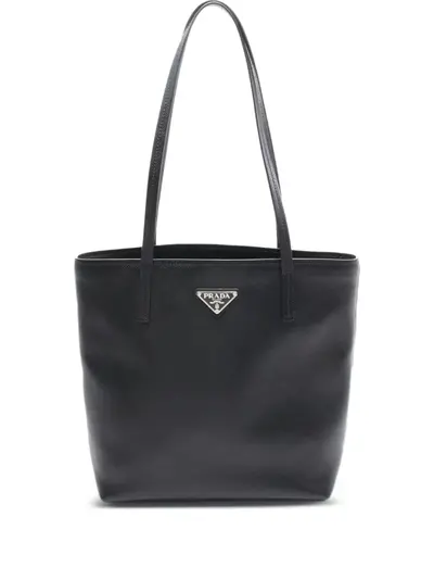circa 2010s black leather two top handles main compartment internal zip-fastening pocket internal logo patch enamel triangle logo Condition: EXCELLENT. This previously owned item is in near-perfect condition with no signs of damage or use.