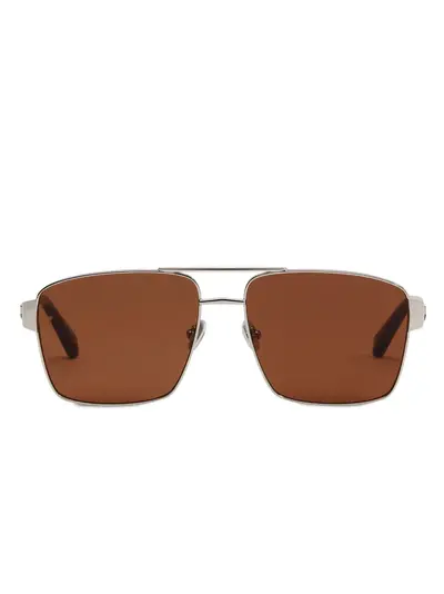 silver-tone tinted lenses double bridge nose pads These glasses come with a protective case.