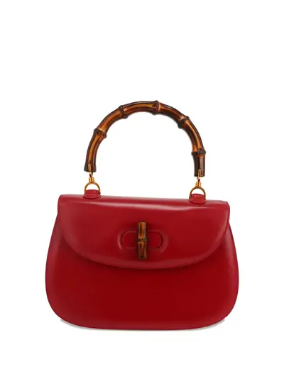 red signature bamboo handle front flap signature bamboo turn-lock detachable shoulder strap gold-tone hardware Condition: GOOD. This previously owned and used item is in good condition with minimal signs of use. This may include fading of material or plating and scratches.