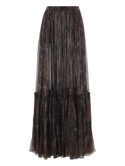 brown elasticated waistband paisley print