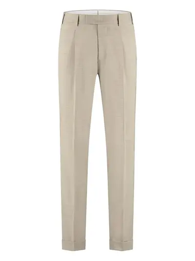 beige hook and zip fly fastening belt loops two rear flap pockets
