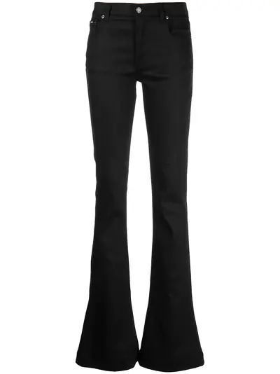 stretch flare denim-pants from TOM FORD featuring black, stretch-cotton, skinny cut, flared design, classic five pockets, button fastening and zip fly fastening.