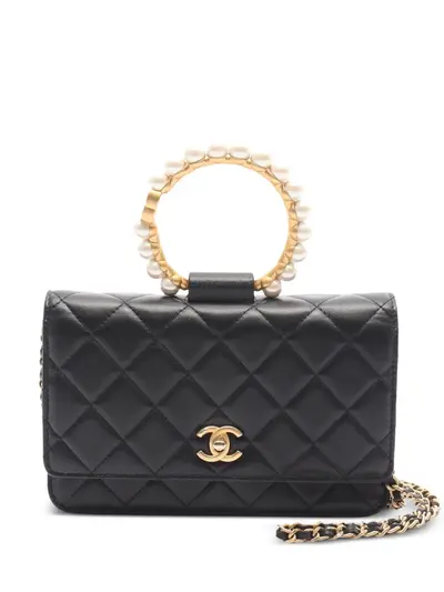 circa 2021 black quilted pattern pearl-embellished handle gold-tone hardware chain strap Serial Number: JNJGCU01 This item comes with an original authenticity microchip. This item comes with an original authenticity seal. Condition: EXCELLENT. This previously owned item is in near-perfect condition with no signs of damage or use.