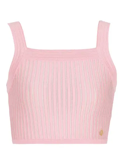 pink ribbed knit square neckline sleeveless zip fastening gold-tone logo