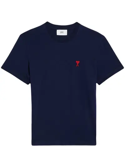 navy blue cotton jersey knit signature Ami de Coeur monogram motif round neck short sleeves straight hem When buying this unisex item, keep in mind that it is graded in standard men's sizing.