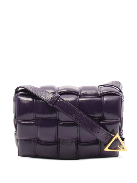 2010s purple calf leather padded design signature Intrecciato design adjustable shoulder strap foldover top main compartment internal zip-fastening pocket gold-tone hardware Condition: EXCELLENT. This previously owned item is in near-perfect condition with no signs of damage or use.