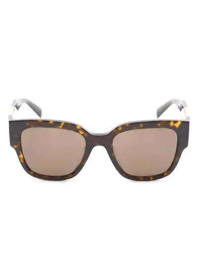 2010s brown tortoiseshell pattern rectangle frame shape La Medusa emblem These glasses come with a protective case.