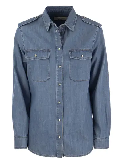 steel blue front press-stud fastening two chest flap pockets epaulettes long sleeves