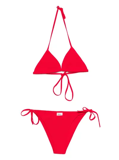 red triangle top side tie bottoms Be mindful to try on swimwear over your own garments.
