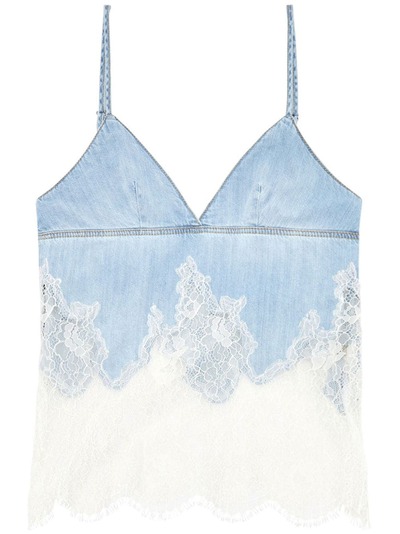 light blue/white cotton-lyocell-modal blend denim lace panelling Oval D logo plaque V-neck adjustable spaghetti straps scallop hem