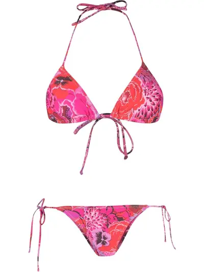 recycled polyamide blend multicolour all-over floral print triangle cup halterneck tie fastening rear tie fastening side-tie bottoms Be mindful to try on swimwear over your own garments.