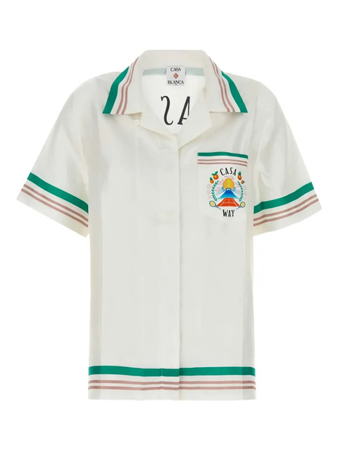off-white geometric pattern ombre effect short sleeves point collar button fastening