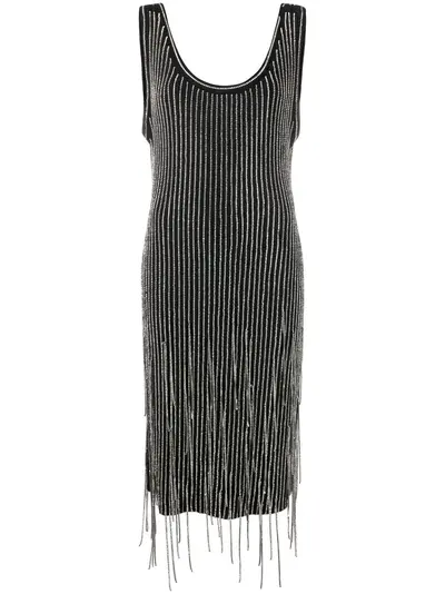 black virgin wool knitted construction fringe detailing scoop neck sleeveless scoop back mid-length