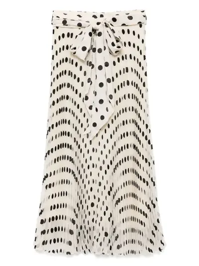 light beige concealed rear zip fastening detachable and adjustable waist belt full lining polka dot print