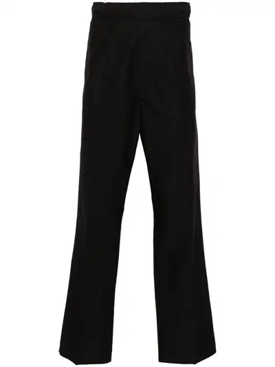 black cotton blend interlock weave pressed crease logo patch to the rear mid-rise elasticated waistband with internal drawstring concealed front zip fastening two side welt pockets rear welt pocket straight leg authenticity QR code