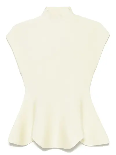 light yellow mock neck cap sleeves peplum hem