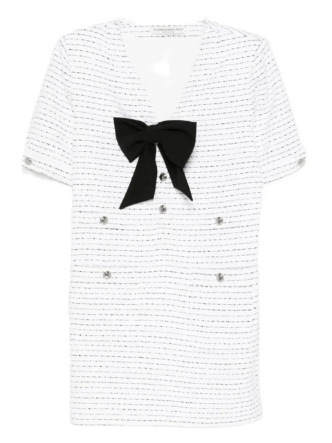 white tweed bow detail short sleeves button fastening V-neckline Made in Italy