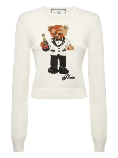 Philipp Plein teddy-embroidered crew-neck sweater - 29909265 (LPN188878)
