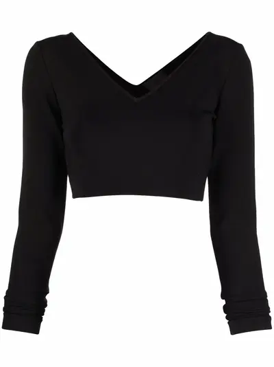 black tonal design V-neck V-back long sleeves cropped