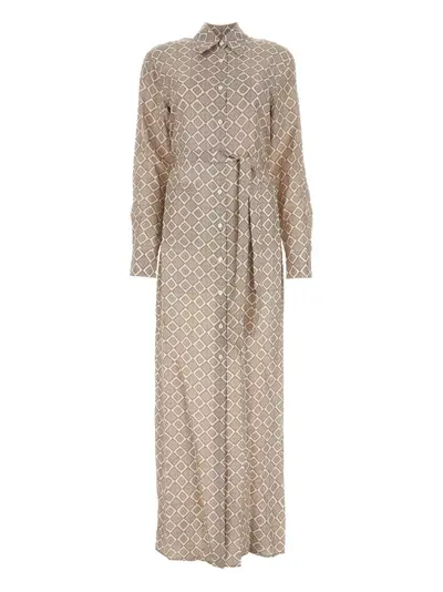 beige geometric print button fastening long sleeves collared neckline self-tie belt