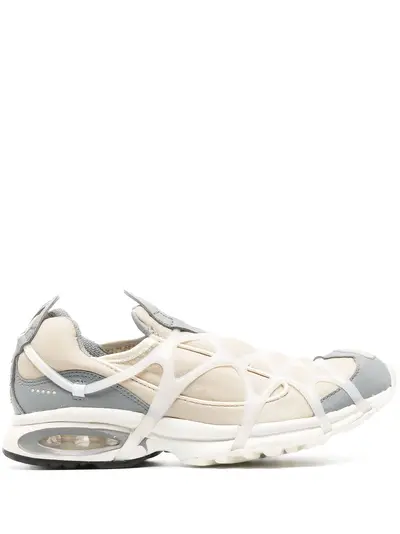 beige/grey two-tone design panelled design caged design slip-on style round toe double pull-tab at the opening signature Air cushioning rubber sole These styles are supplied by a premium sneaker marketplace. Stocking only the most sought-after footwear, they source and curate some of the most hard to find sneakers from around the world.