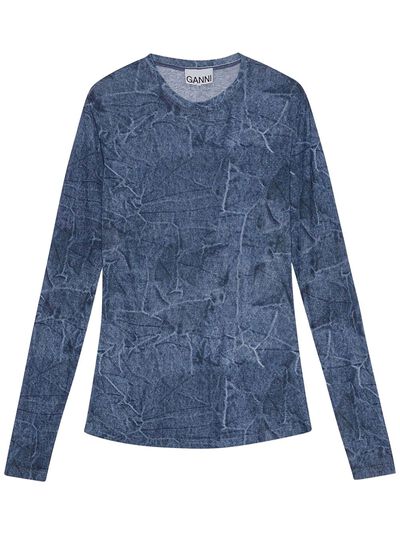 blue mesh design abstract pattern print crew neck long sleeves straight hem