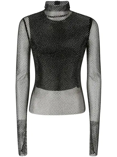 black glass mesh design rhinestone embellishment semi-sheer construction high neck rear zip fastening long sleeves straight hem detachable inner blouse set of two