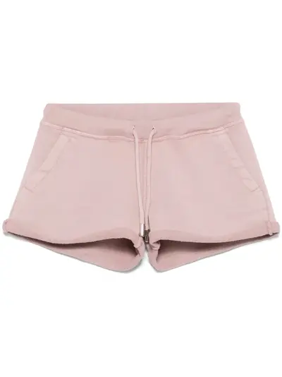 light pink elasticated drawstring waistband two diagonal pockets to the sides rolled trim