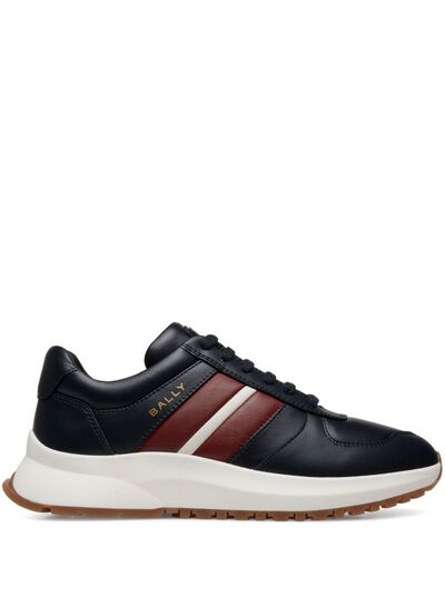 midnight blue/burgundy/white calf leather smooth grain colour-block panelled design side stripe detailing logo print to the side appliqué logo round toe front lace-up fastening branded leather insole Vibram® sole