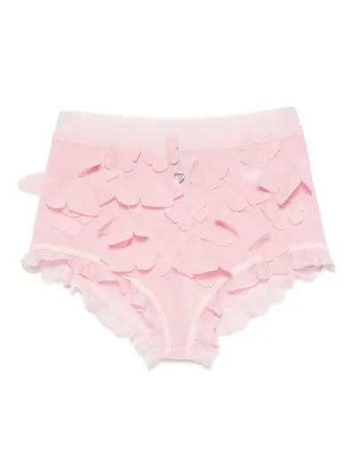 pink butterfly embellishment ruffled trim sheer fabric knitted texture