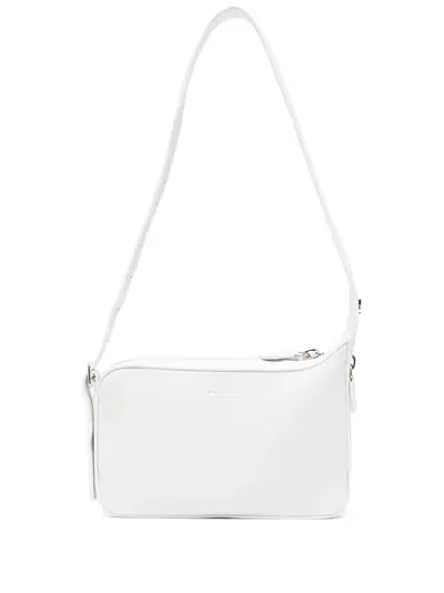 white calf leather logo print to the front logo plaque top zip fastening adjustable shoulder strap silver-tone hardware internal zip-fastening pocket