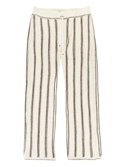 ecru elasticated drawstring waistband ladder-stitch detailing pinstripe pattern embroidered logo to the front slip pockets to the sides logo patch to the rear