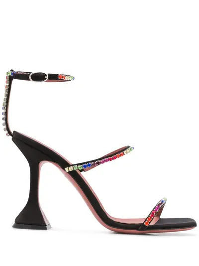 black crystal embellishments open toe thin straps buckle-fastening ankle strap branded insole high sculpted heel leather sole
