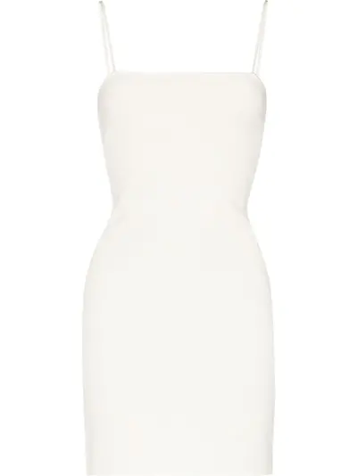 white tonal design square neck spaghetti straps cut-out detailing clasp fastening