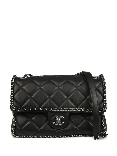 circa 2020 black calfskin diamond quilting chain trim detail leather and chain-link shoulder strap signature double flap closure signature interlocking CC turn-lock fastening main compartment internal zip-fastening pocket internal logo stamp silver-tone hardware Serial Number: 29750202 This item comes with an original Chanel authenticity card. Condition: GOOD. This previously owned and used item is in good condition with minimal signs of use. This may include fading of material or plating and scratches.