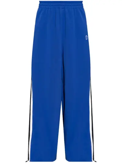 electric blue/black/white jersey texture elasticated waistband mid-rise two side slit pockets side stripe detailing embroidered logo at the leg wide leg long length