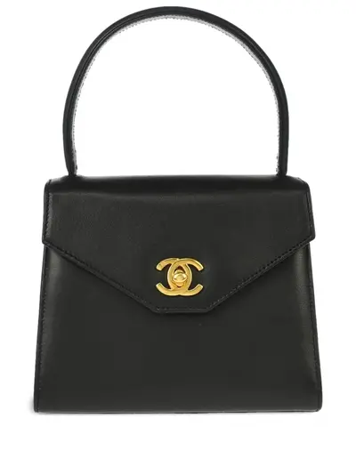 circa 1997 black leather grained texture single top handle signature interlocking CC turn-lock fastening main compartment contrast lining Serial Number: 4743182 Condition: GOOD. This previously owned and used item is in good condition with minimal signs of use. This may include fading of material or plating and scratches.