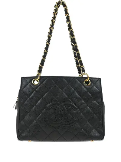 circa 2008 black caviar leather diamond quilting signature interlocking CC logo two leather and chain-link top handles top zip fastening main compartment internal zip-fastening pocket internal slip pocket internal logo patch full lining metal feet gold-tone hardware Serial Number: 12234225 This item comes with an original authenticity seal. Condition: GOOD. This previously owned and used item is in good condition with minimal signs of use. This may include fading of material or plating and scratches.