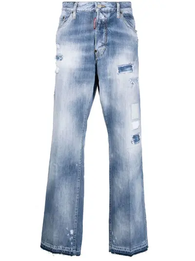 blue cotton faded effect distressed effect ripped detailing low-rise belt loops front button and zip fastening classic five pockets wide leg