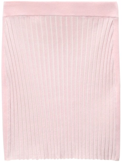 pink cotton blend knitted construction ribbed knit horizontal stripe print elasticated waistband thigh-length straight hem