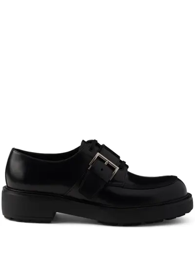 Prada brushed leather buckled derby shoes - 24170826 (LPN207732)